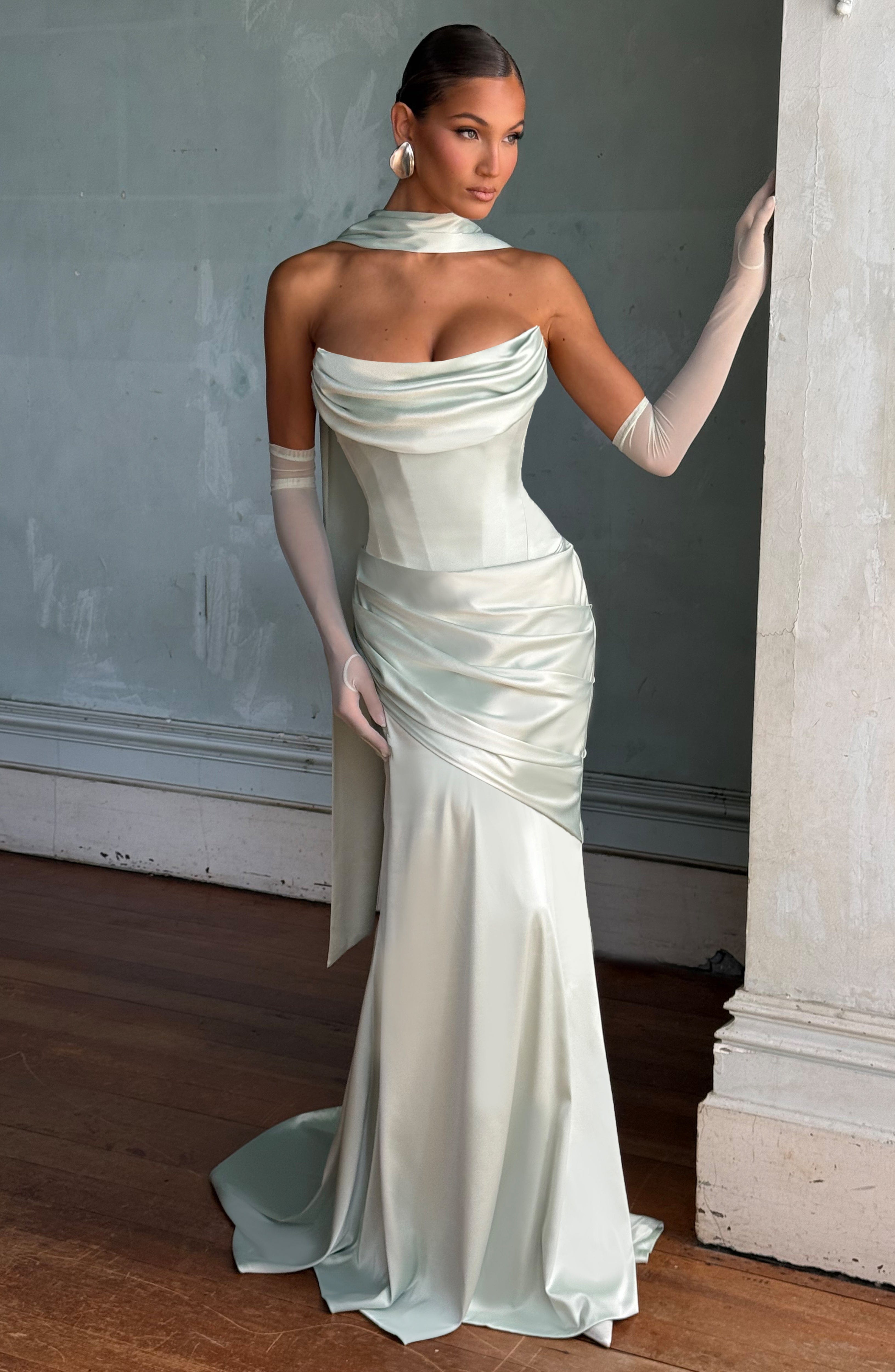 The Sybil Scarf in Mint is effortlessly elegant. This long, satin scarf drapes beautifully over the neck, adding a sleek, polished touch to any look. Timeless, versatile, and undeniably chic.